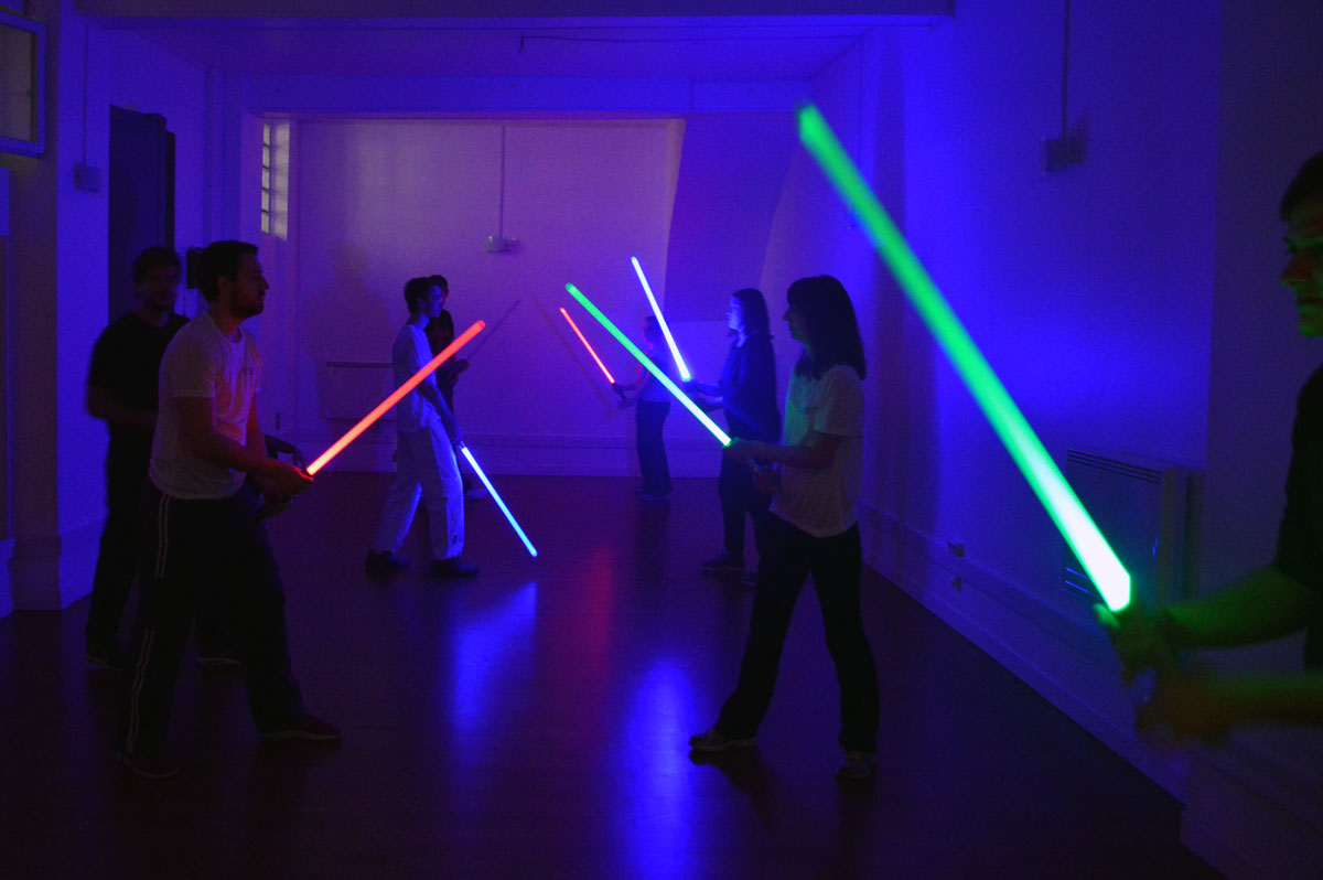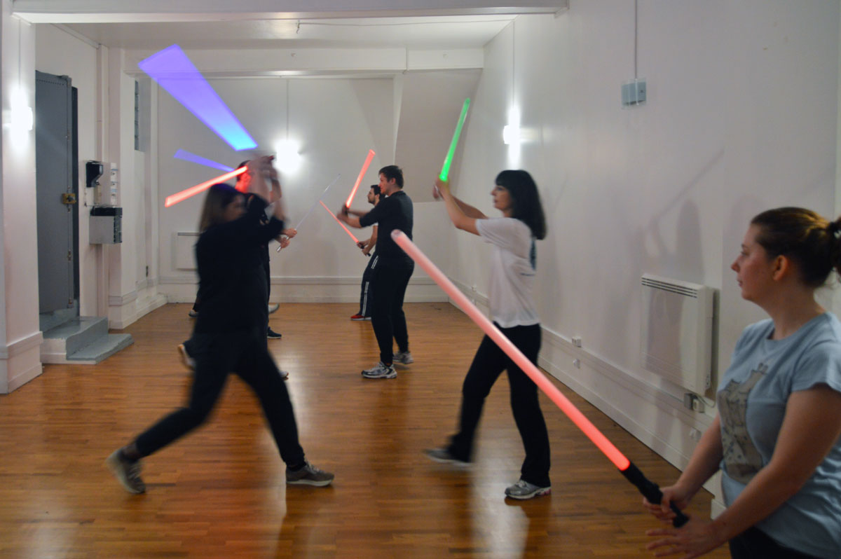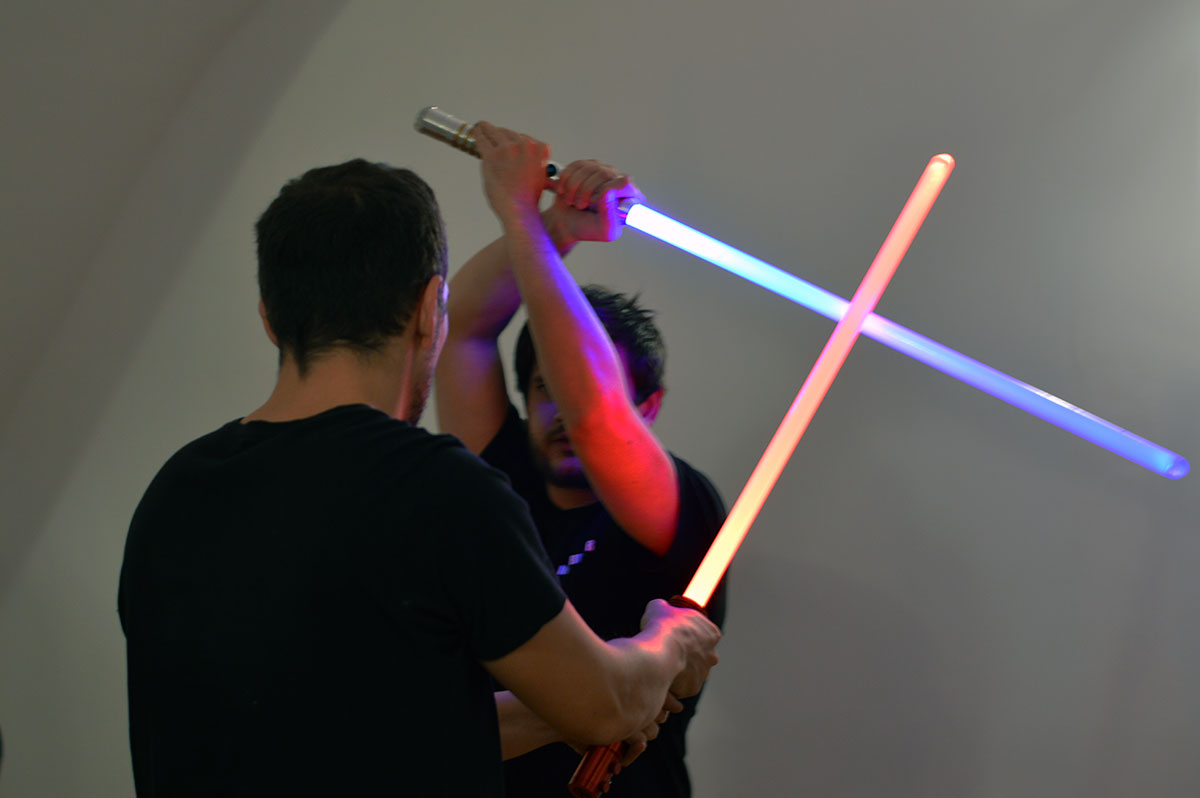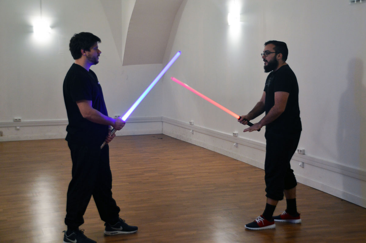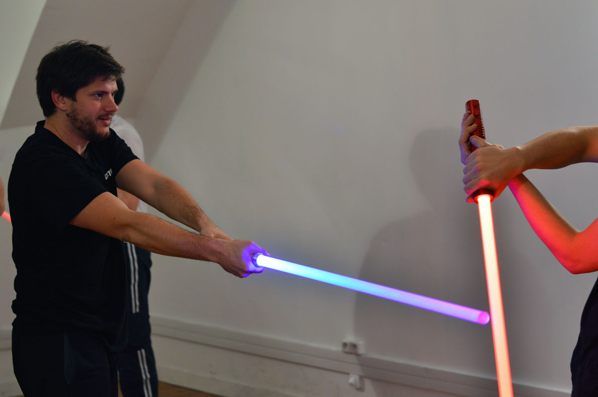 Je vous vois tous vous interroger sur cette école en disant peut-être que c’est aller trop loin dans le game et dans le marchandising de Star Wars, mais ce n’est pas le cas. Certes, cela provient d’une saga cinématographique, mais cela vient surtout de plusieurs sports. On retrouve ainsi des coups provenant du Kendo, de la canne française, et d’autres sports de combat. Sans être aussi violent, on peut apparenter le maniement du sabre laser à celui du Krav-Maga qui emprunte ses techniques à d’autres sports de combat. Pas question non plus de faire dans le cliché du film, on vient faire du sport et on ne s’habille pas en pagne jedi.