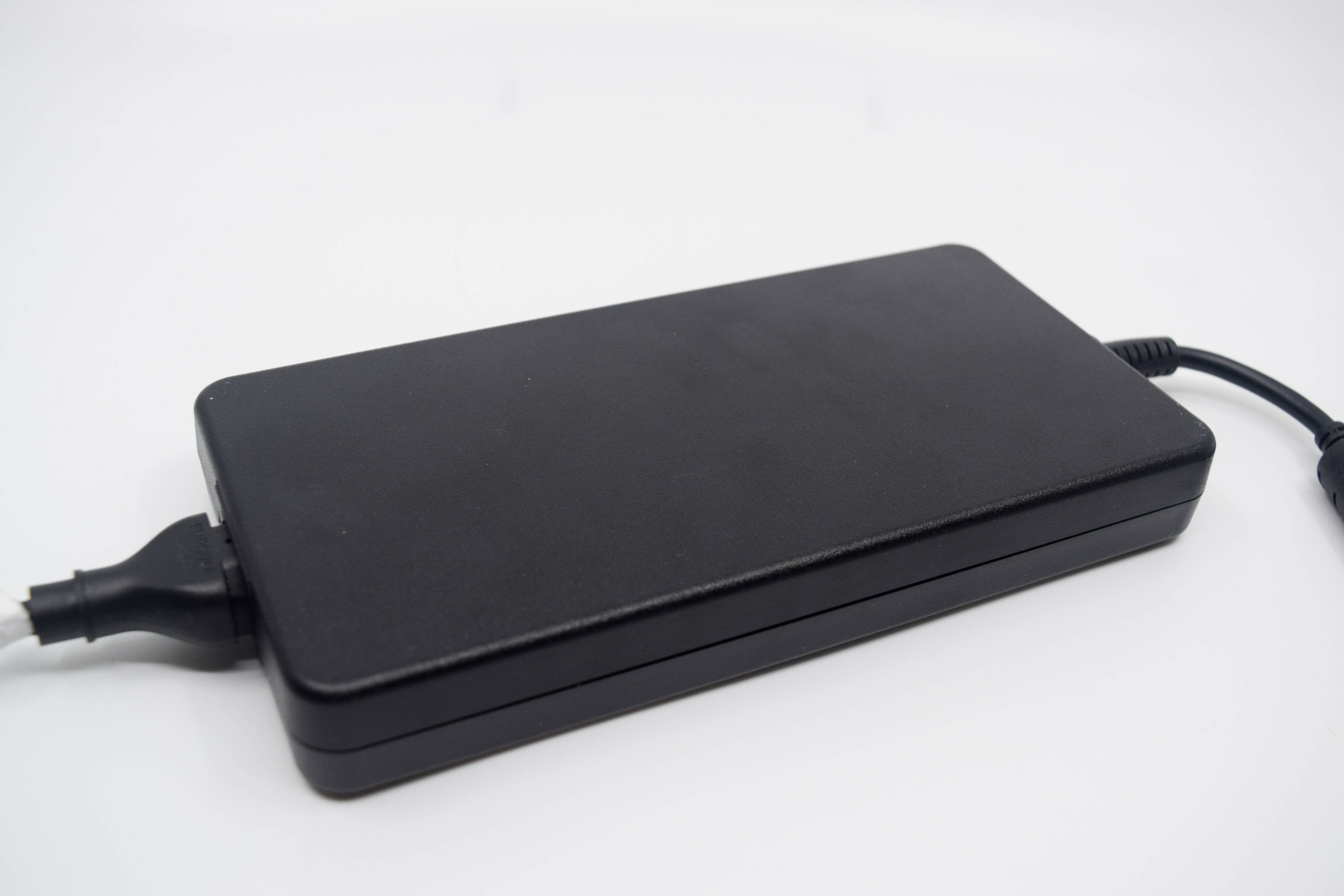 Autre chose qui vous fera laisser le PC sur votre bureau: le bloc d’alimentation. On avait vu des blocs d’alimentation dédiés, mais quand on pense PC portable, on pense mobilité. C’est pas évident de se balader avec le PC et son bloc d’alim dédié, qui rajoute quasiment 1 kg de plus à la config. Vu le montre de puissance, il lui faut bien ça, mais c’est pas idéal dans le sac, encore une fois. Sans alimentation, on est sur 3-4h max d’autonomie, tant de composants gourmands dans un tel châssis, ça consomme énormément. Ça peut paraître faible, mais c’est dans la moyenne de ce type de produit, pas d’inquiétude !