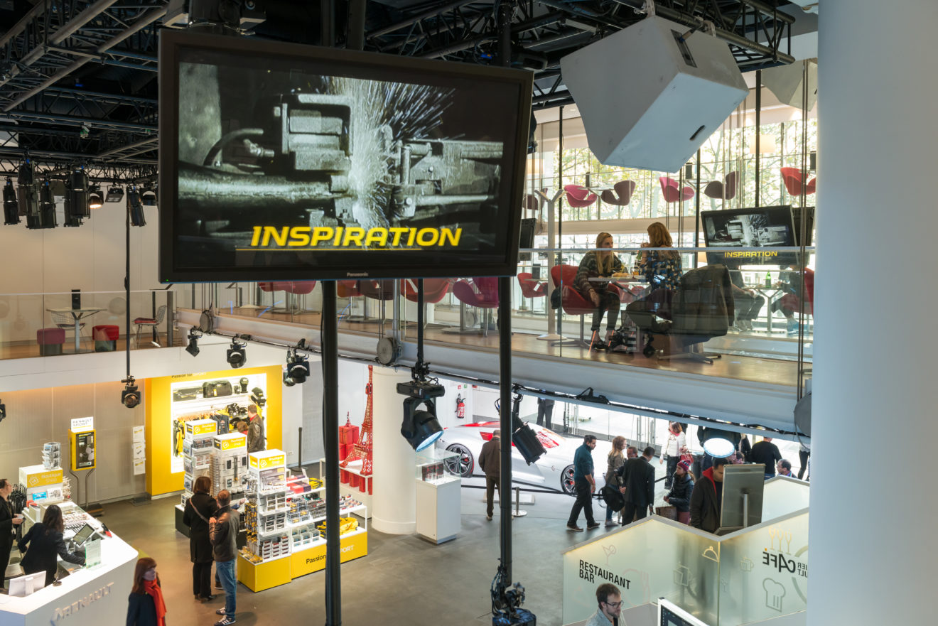 Sur les Champs-Elysées, l’Atelier Renault est présent depuis 1910. Au début il s’agissait d’un lieu d’exposition et un site commercial avant d’évoluer vers ce qu’il est aujourd’hui : un lieu d’exposition et d’expériences autour de Renault et de la voiture.