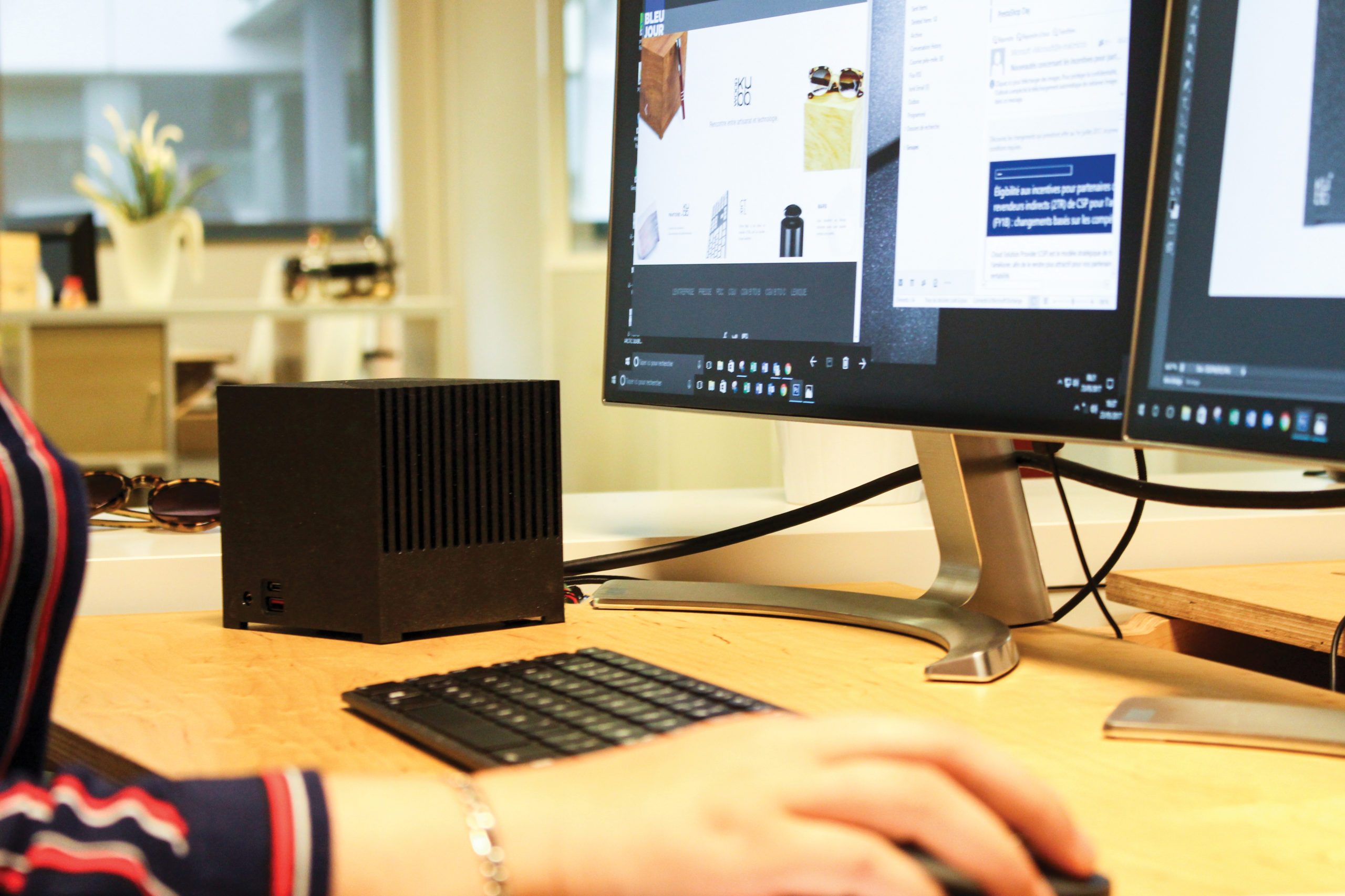 Kubb est plus qu’un formidable ordinateur de bureau, c’est un concentré de technologies aux performances professionnelles exceptionnelles. En effet, ces derniers modèles de la marque BLEU JOUR sont configurés avec un CPU Intel Core i3, i5 & i7 de 8éme génération 28W avec Intel Iris Plus Graphics 655. Le Kubb Fanless supporte jusqu’à trois écrans pour que les applications bureautiques deviennent plus faciles d’utilisation.