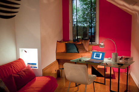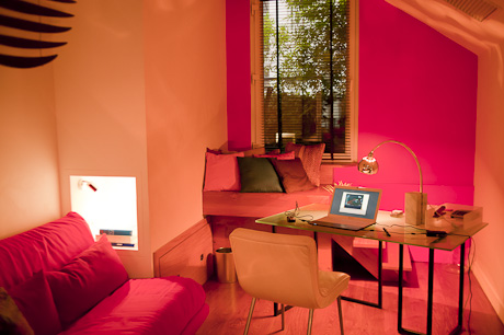 Sur la photo du haut, nous avons le phénomène dont nous parlions, avec les murs jaune / orangé. Sur la seconde photo les murs, et même le fauteuil ont retrouvé leurs vrais couleurs. Nous avons réajusté la “température des couleurs”… Sur la première photo, les couleurs étaient trop “chaudes”, elles tiraient sur le rouge. Sur la photo suivante nous avons rééquilibré l’ensemble en faisant en sorte que les couleurs soient un peu plus “froides” : qu’elles soient plus vers le bleu que le rouge… Nous verrons plus loin comment faire cela.