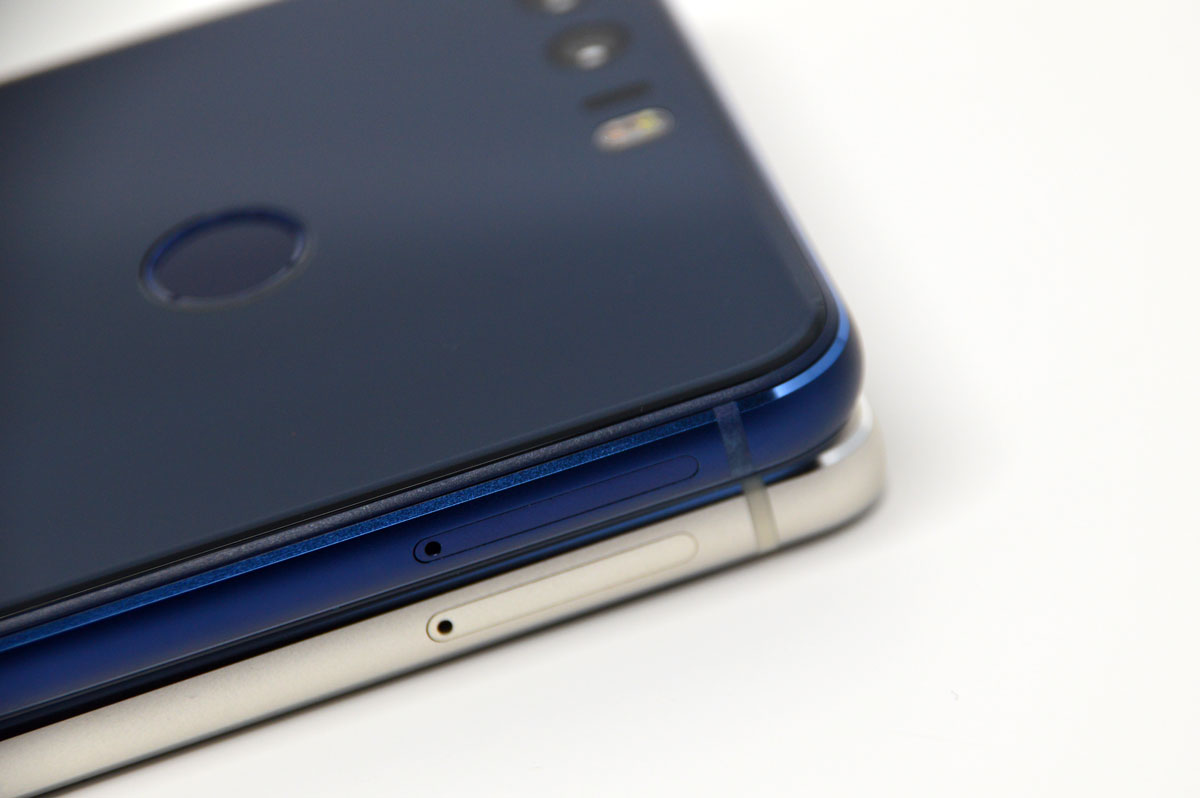 Hadrien : Le Honor 8 est beau, peut-être un peu trop par rapport à la cible. Le moto « For the brave » est un peu oublié, puisqu’on a du verre au dos. Il faudra donc bien le protéger, autrement le smartphone risque de se transformer en palet de hockey sur n’importe quelle surface. Le Honor 8 manque en effet des petits patins (comme sur le second Nexus 4) afin d’accrocher. Il prend les traces de doigts, j’espère que Kevin ne l’a pas rayé… N’empêche, l’effet avec la lumière est très sympa, on peut le voir sur les photos au dessus, ça se reflète différemment.