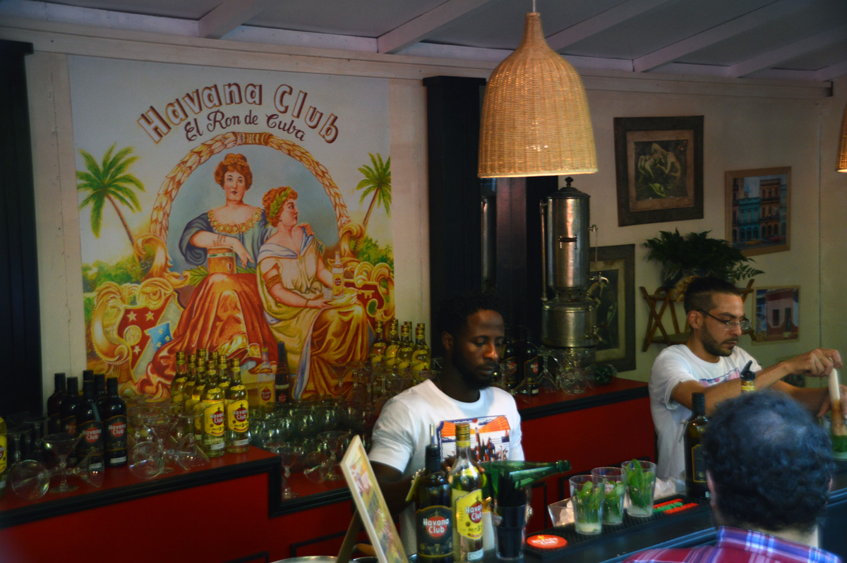 La marque de rhum cubain Havana Club a reconstitué cette véritable place traditionnelle cubaine autour de deux bars mythiques de la Havane : La Bodeguita del Medio où boire son mojito et El Floridita où boire son Frozen Daiquiri.