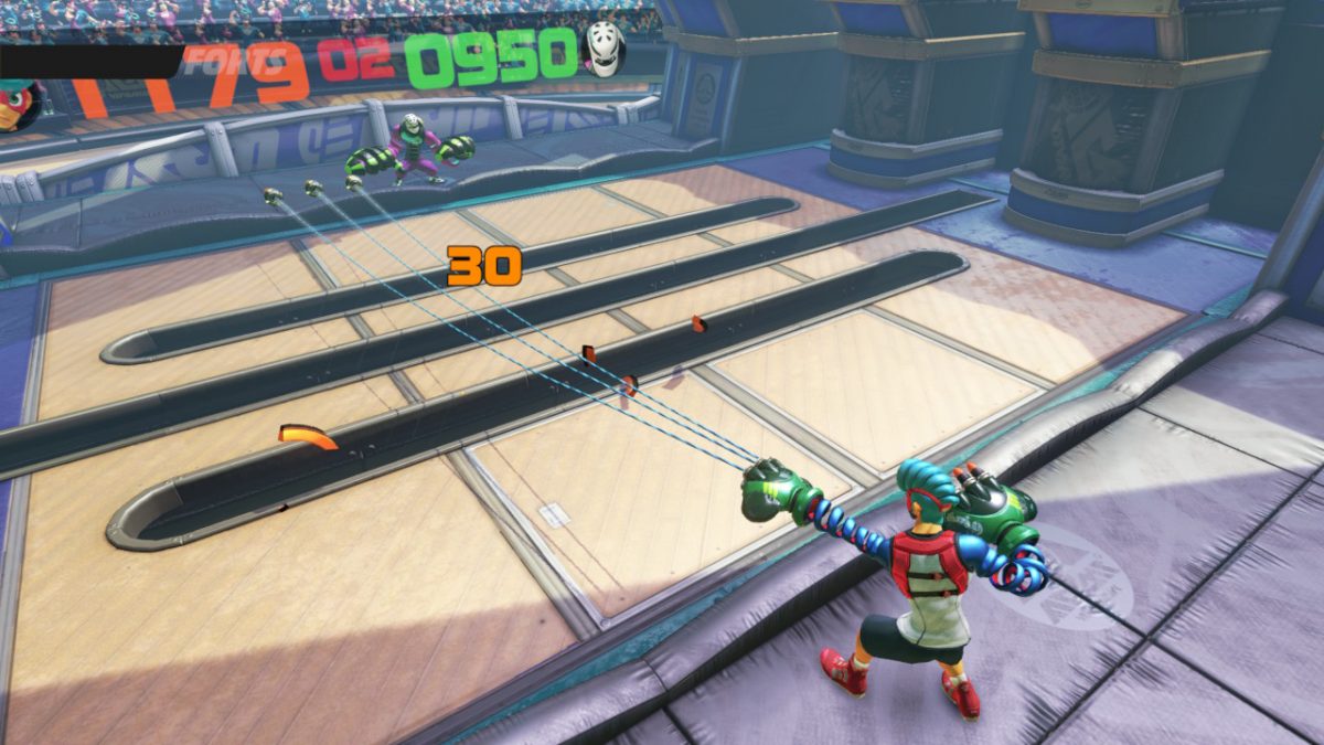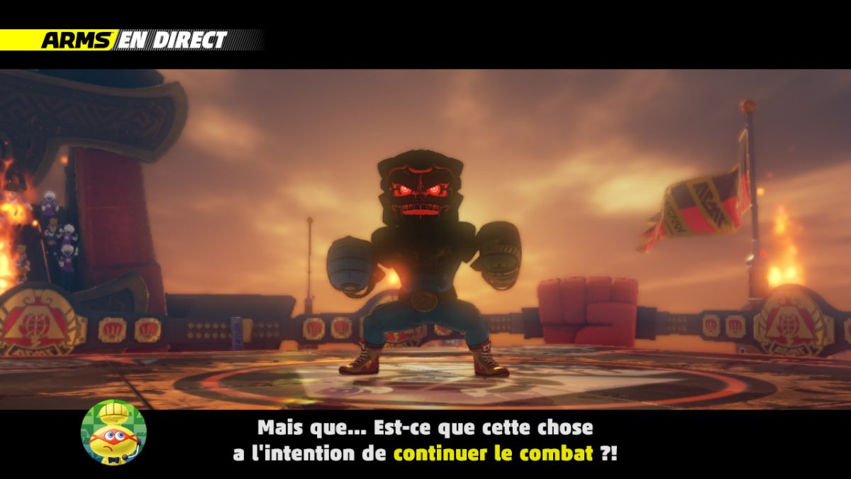 Ce n’est pas un jeu de combat classique. Comme je l’expliquais chacun a ses caractéristiques. Mais le plus intéressant, c’est les fameux bras élastiques qui vont permettre de placer des contres ou d’attaquer l’adversaire même de loin. On frappe, on esquive, on chope, on se protège, on frappe pour contrer les esquives. Avec « si peu » de coups, ARMS est quand même technique. A cela, on rajoute l’arme, et voilà le jeu vous demandera de bien faire attention et de ne pas appuyer n’importe comment par rapport à d’autres jeux de versus fighting. L’attaque suprême se lance facilement, mais elle peut être déjoué par de l’esquive ou par un coup bien placé. Le jeu est complet mais, ça manque de combos quand même !