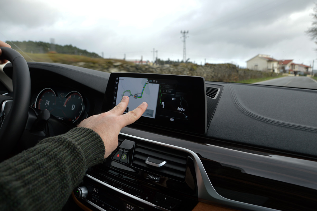 Même si chez BMW on ne jure que par leur système iDrive (grossièrement une molette), on peut aussi gérer certains paramètres avec des gestes. En tournant son doigt devant l’écran, on peut ainsi augmenter ou diminuer le volume sonore, changer de radio avec 2 doigts, ou activer la vue 3D de la voiture en faisant « glisser » ses doigts. C’est cool et vraiment pratique. Cependant, pas forcément très précis quand on changeait le volume.