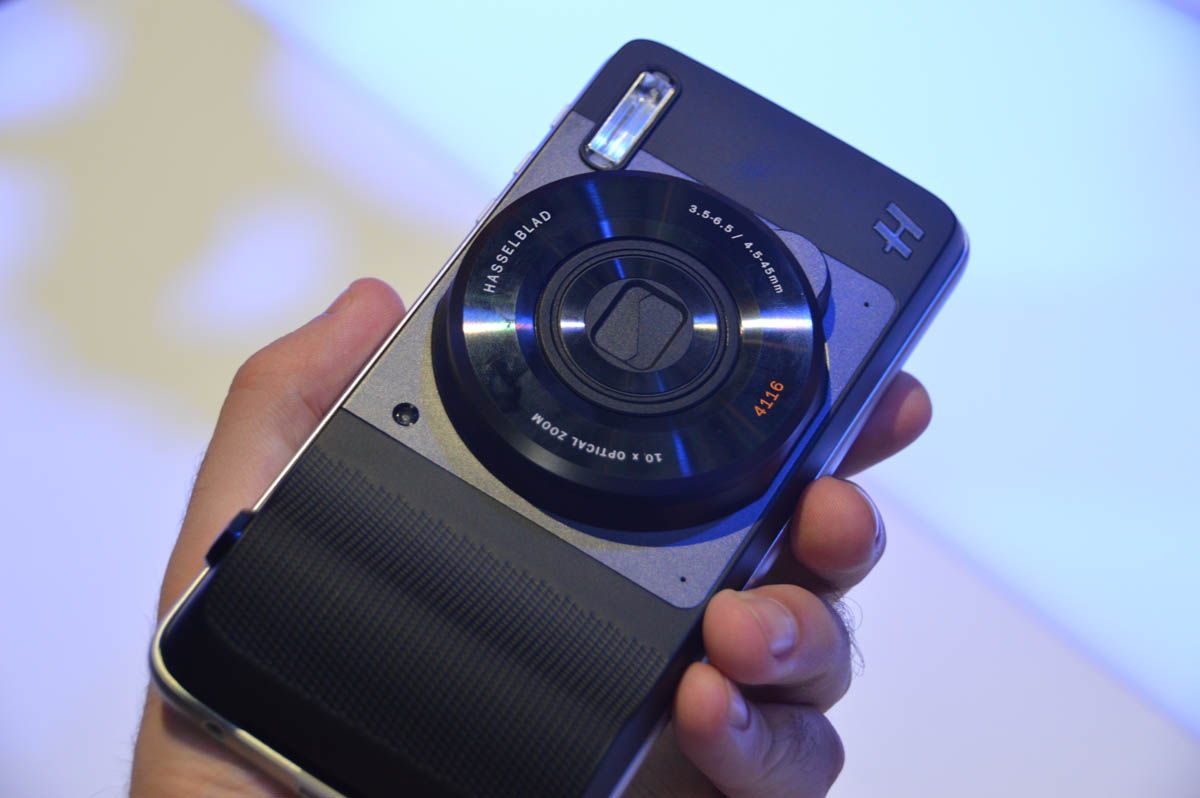 Pour la partie smartphone, on retrouve un Moto Z Play qui se veut moins puissant mais aussi plus abordable que le Moto Z. Il conserve la compatibilité avec les Moto Mods dont le tout dernier Hasselblad 4116 qui permet de transformer le smartphone en un appareil photo compact. Les photos prises avec sont impressionnantes !