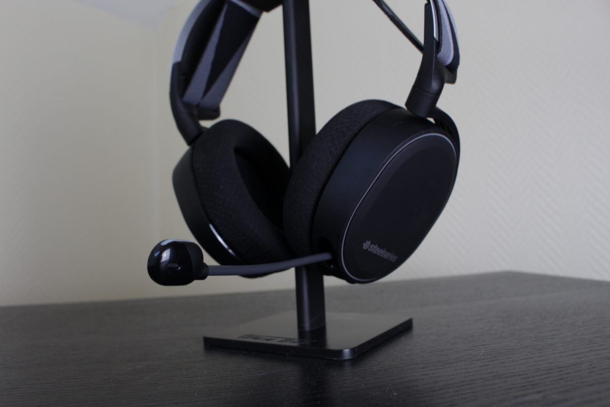 Toujours dans cette optique de proposer du matériel design, SteelSeries signe ici, avec le haut-gamme de Arctis, un casque très sobre et épuré. J’ai eu entre les mains la version noire et sur le côté esthétique, rien à redire. On constate très vite que le confort a été un élément important dans la conception du casque. La mousse, placée sur les écouteurs, est très confortable même si je regrette un peu son épaisseur. Mes oreilles étaient en contact avec la partie en plastique, ce fut parfois dérangent. Le casque est livré avec un bandeau qui est censé soutenir votre tête, ainsi votre crâne n’est pas en contact direct avec l’arceau mais est soutenu par le bandeau, c’est beaucoup plus agréable. Vous pouvez même changer de bandeau, SteelSeries en proposent sur leur site à un prix de 14,99 €. Casque gaming oblige, il embarque un microphone rétractable, très pratique lorsque l’on ne l’utilise pas. Malheureusement, si vous êtes streamer/youtuber n’envisagez pas de commenter vos parties avec. Le son du micro reste correcte pour chatter en ligne, mais reste très médiocre lorsque l’on s’enregistre.
