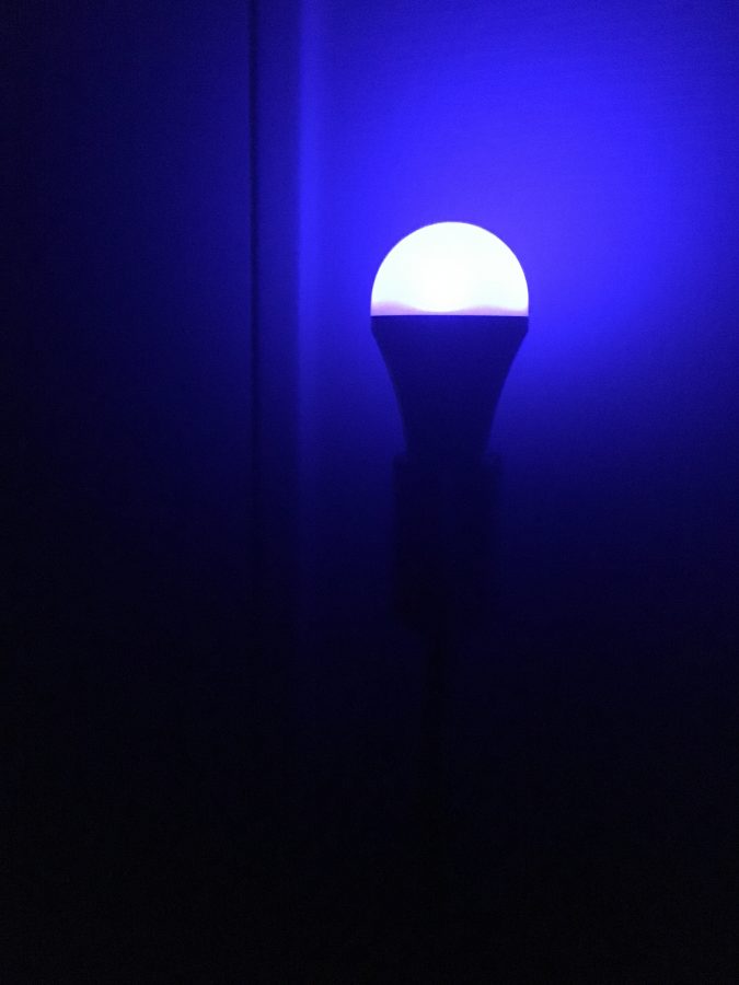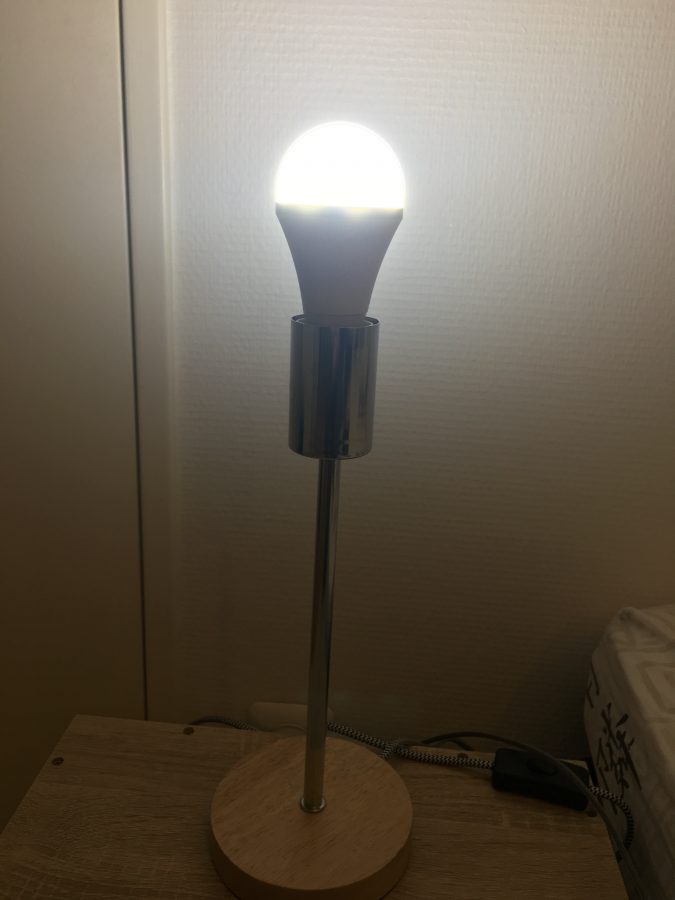 L’utilisation s’avère très simple au quotidien. La fonction réveil allie l’ampoule et le téléphone. Une fois réglé, celui-ci allumera la lampe 20 min avant la sonnerie du téléphone. Petite précision, il se n’agit pas d’allumer la lampe d’un coup, mais d’un allumage progressif et exponentiel. Ça commence par une couleur complétement bleu avec une intensité très faible à une lumière blanche froide et vive. Entre les deux environ 30 min.