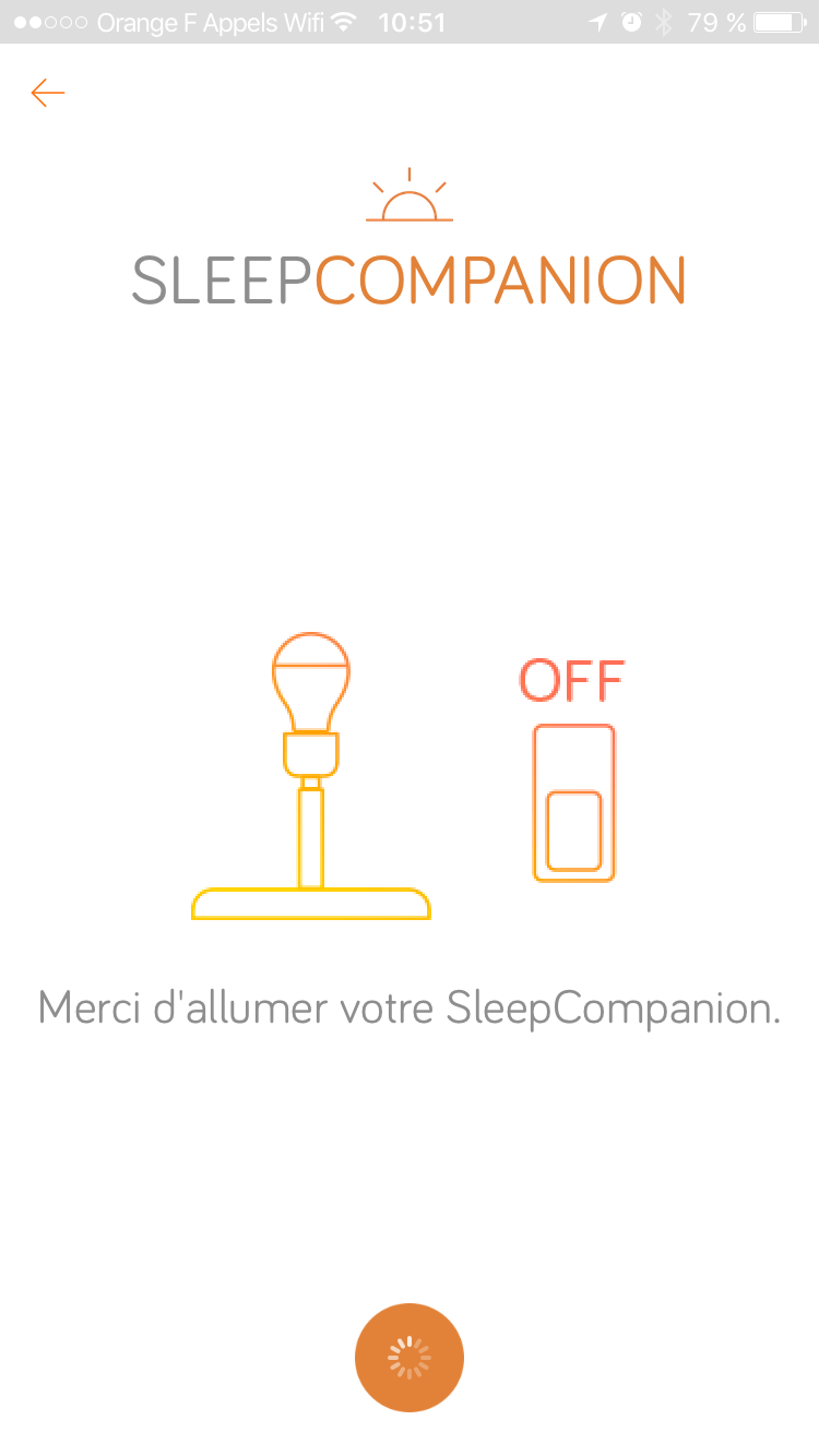 Dans le cas présent, l’application utilisée est « Sleep360 by holi » en version 1.6.1 sur iPhone 6s. L’application est épurée, propre et facile d’utilisation. Une fois l’ampoule appairée, l’écran par défaut est celui du réveil avec un bouton pour allumer la lampe ou l’étendre.