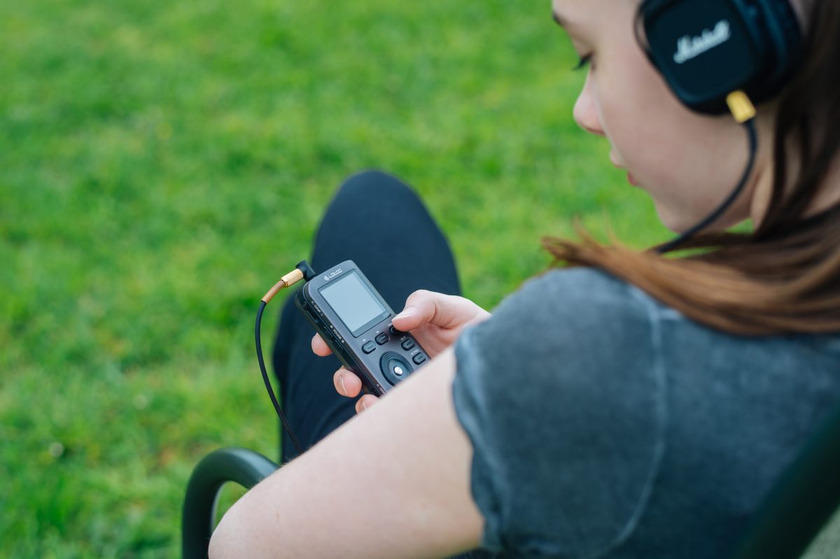 La musique est lu à partir d’une carte micro SD (jusqu’à 2To), et on l’écoute via un casque branché sur le port mini-jack de 3,5mm, ou via la sortie casque symétrique mini-jack 2,5mm. Il est aussi possible d’écouter son son préféré depuis… un casque bluetooth. Pas mal ! Alors oui, le son n’est pas aussi fat qu’en filaire (le bluetooth n’a pas une bande passante assez large pour pouvoir transmettre sans compresser tout le spectre audio offert par la Hi-Res) mais c’est bien pratique si on a déjà un casque sans fil.