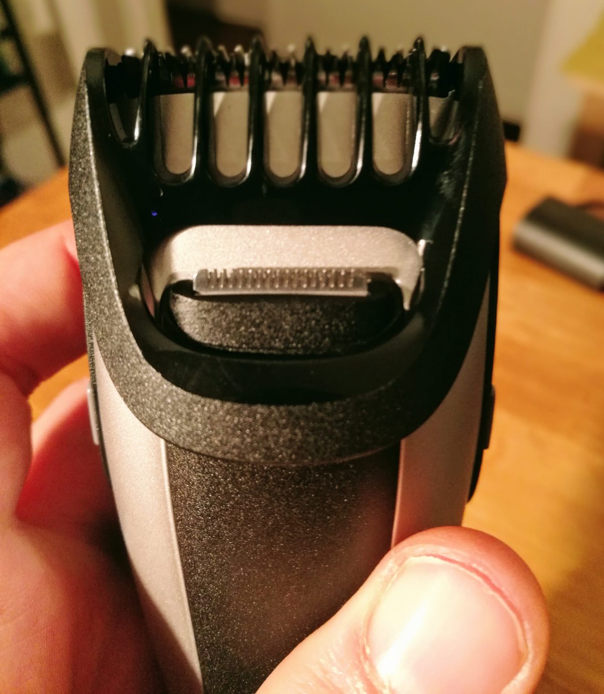 Mais pour moi la fonctionnalité la plus pratique de cette BeardTrimmer BT5090 est sa lame de précision. En plus de la lame principale, vous trouverez une lame plus petite, incrustée dans le manche de l’appareil. Pour l’utiliser, il suffit de la faire glisser sur la lame principale et ainsi elle prend le dessus pour raser des zones précises. Très pratique, cette petite lame sera votre allié numéro un pour dessiner les contours de votre moustache.