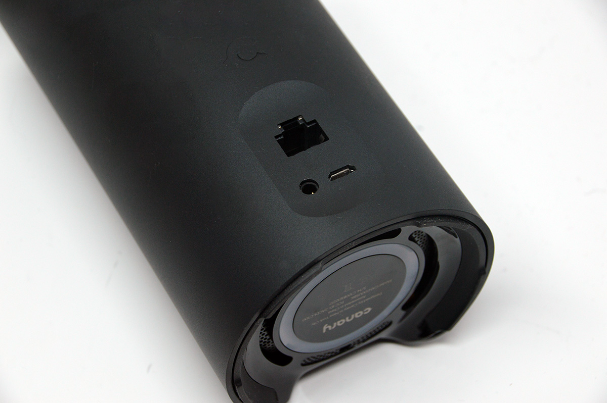 La caméra Canary est proposée avec un câble USB, son chargeur, ainsi qu’un câble jack afin de la brancher à une enceinte. Elle peut se connecter en Wi-Fi ou en Ethernet.