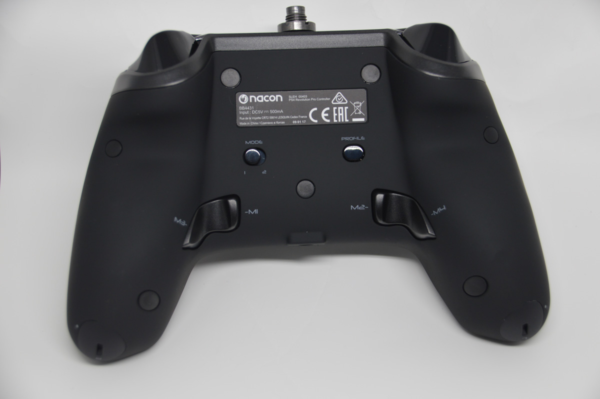 On trouvera également 2 nouvelles gâchettes au dos de la manette abritant chacune 2 boutons (nommée respectivement de M1 à M4). Si pour moi elles étaient horribles sur la manette Elite de Xbox et nous obligeais à modifier notre façon de tenir le pad, je les trouve au contraire  sur la Nacon très discrète et accessible.