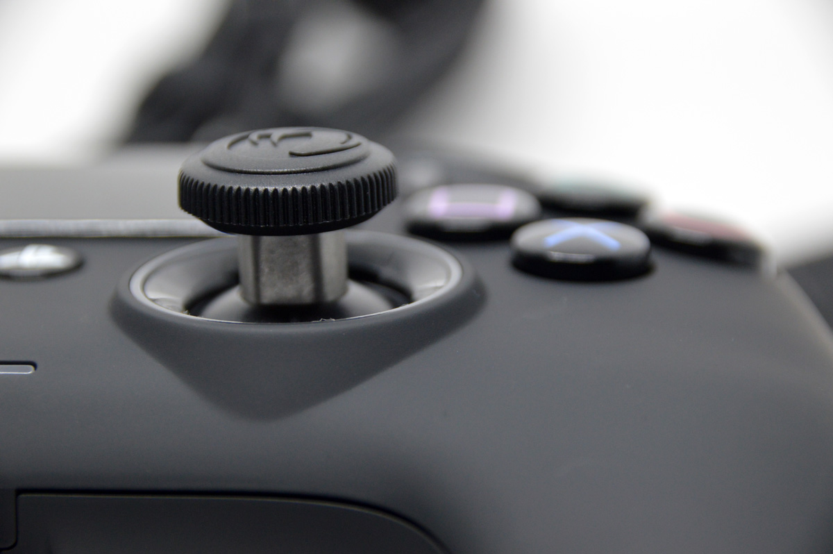 Passons maintenant au ressenti. Les plastics utilisés sont doux et très agréable en main. Pas de surface de type « grip » à l’horizon et ce n’est vraiment pas pour me déplaire. Le caoutchouc des joysticks est également bien au-dessus de ce que l’on trouve actuellement sur les Dualshock 4 made in Sony qui, en grande majorité, au bout de quelques mois d’utilisations finissent par s’arracher… Là au contraire on sent que le matériel va durer dans le temps. Pendant que nous parlons des joysticks, une grande différence est à noter par rapport aux Dualshock 4 qui est : ses joysticks asymétrique. Une première chez Playstation ! Toujours habitué à avoir les 2 joysticks l’un à côté de l’autre au bas de la manette et ce depuis la PS1, là on se retrouve devant une manette à l’ergonomie ressemblant bien plus à une manette Xbox. Les puristes crierons au scandale, moi je dirais plutôt question d’habitude…