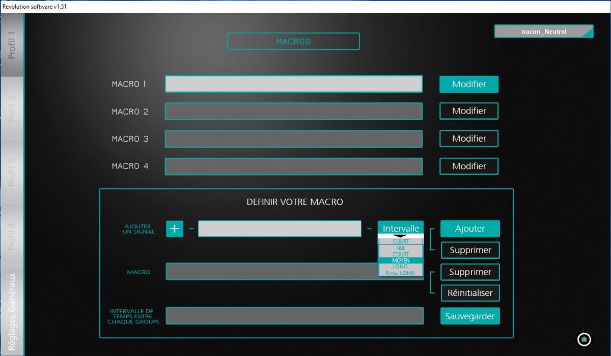 Les 4 nouveaux boutons présents également au dos du pad peuvent se paramétrer façon « macro ». C’est-à-dire, mettre une combinaison de boutons à faire (très utile dans les jeux de combats) et n’avoir qu’à presser M1 pour l’exécuter, ou bien y associer le bouton de tir et régler cette gâchette de façon à ce que cela fasse un auto-fire si vous restez pressé dessus, c’est aussi faisable.