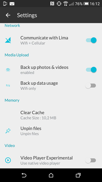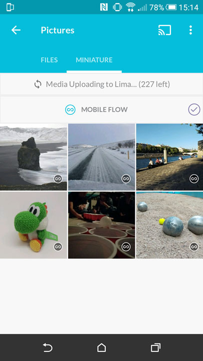 Sur les smartphones, l’application disponible sur iOS et Android permet de synchroniser uniquement les photos et vidéos en Wi-Fi ou 3G/4G. On est du coup un peu limité mais on peut lire des documents placés depuis le PC vers Lima. L’équipe a intégré le support du Chromecast afin de pouvoir diffuser ses photos/vidéos. Il inclut un lecteur vidéo et audio ce qui permet de pouvoir lire à distance les fichiers stockés. C’est pratique et efficace de ce que j’ai pu essayer. Il est vrai qu’avec des applications en bêta, il est dur de se faire un avis final du produit mais pour l’instant tout fonctionne très bien. Il serait bon que l’équipe de Lima propose aussi ses applications en plusieurs langues (ils sont français et pourtant les applications sont uniquement en anglais).