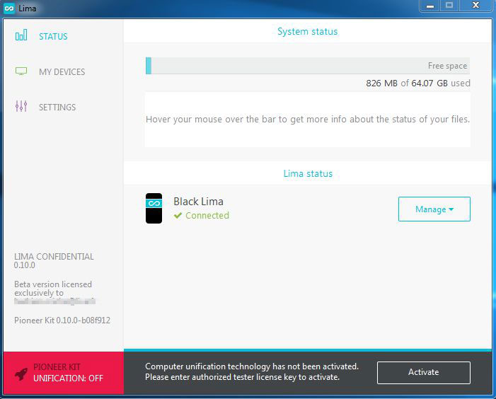 Pour l’installer c’est très simple, il suffit d’une prise secteur et d’un port Ethernet disponible sur sa box pour brancher Lima. Par la suite, une application sur Windows/Mac OS servira à mettre à jour le boîtier et à le paramétrer. Sur les images suivantes, on remarque que Lima s’intègre à l’explorateur de fichiers comme un disque classique. Cependant, l’application étant encore en bêta, il m’est impossible (pour moi) de pouvoir choisir un dossier ou l’intégralité de mon PC à synchroniser.