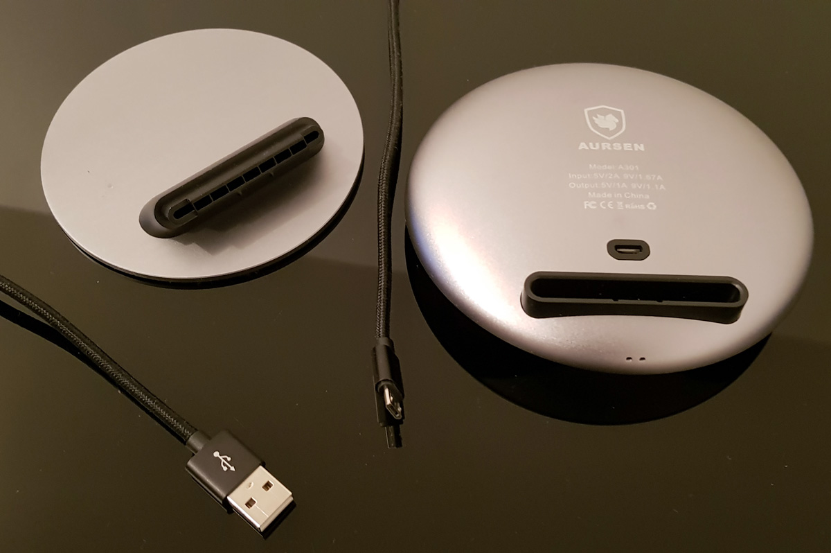 Le chargeur sans fil d’Aursen nécessite un chargeur secteur Quick Charge 2.0 ou 3.0, c’est dommage de ne pas en fournir avec le produit… Autrement, il fonctionne très bien, et on a un petit pad anti-dérapant pour éviter que le produit s’échappe. C’est même compatible avec certaines coques (pour peu qu’elles ne soient pas métalliques). On peut charger son téléphone en position verticale ou horizontale, grâce à ses deux bobines, ce qui permet de regarder un film par exemple.
