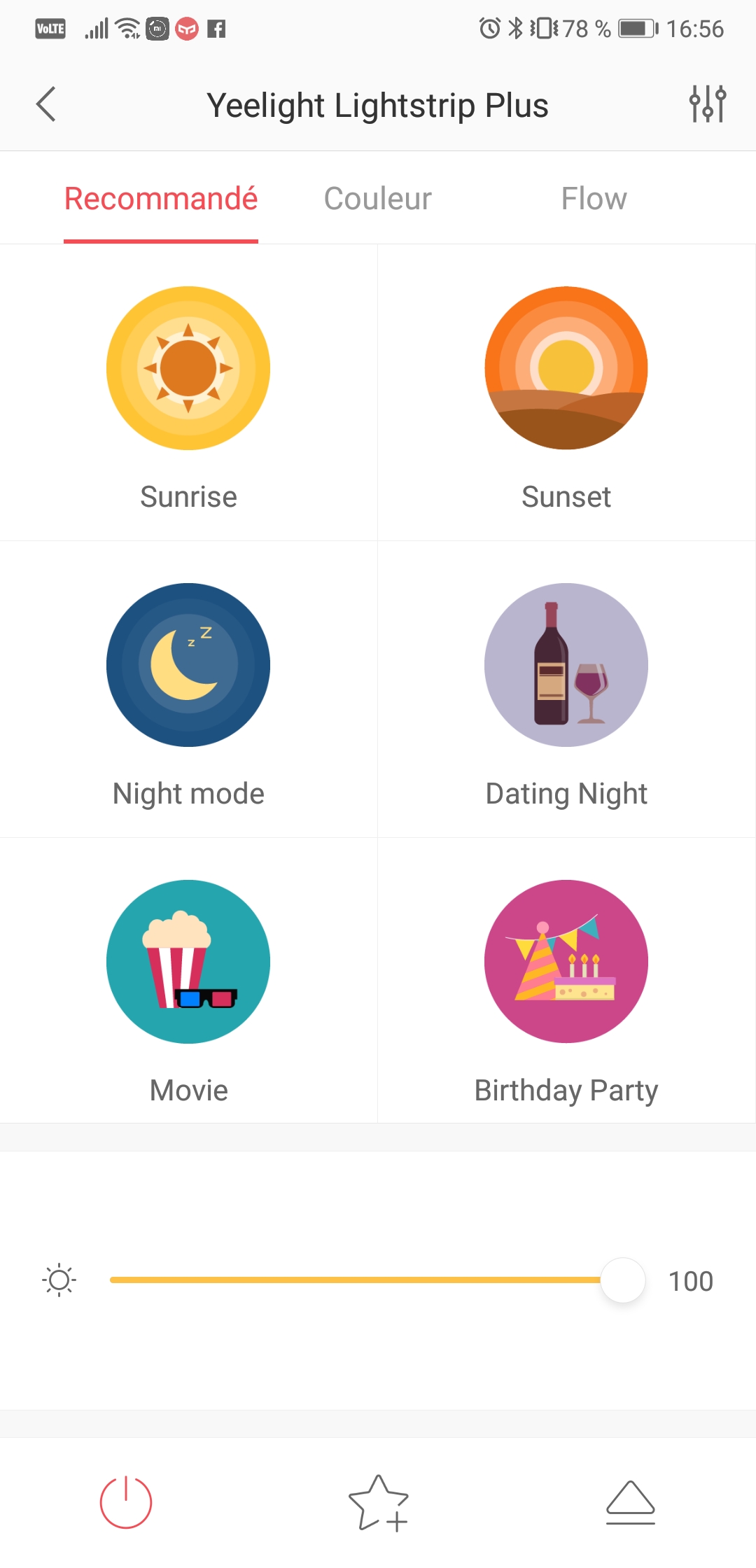 L’application est très bien fournie et fait mieux que celle de Philips avec Hue. D’ailleurs, il est possible de faire réagir la lumière avec votre musique (contrairement à Philips) Personnellement, je la contrôle à la voix puisque je contrôle mes autres ampoules comme ça. Cependant, la petite notification qui permet de l’allumer ou l’éteindre à la volée est très pratique. On  pourra aussi personnaliser le bouton, et créer les différentes scènes ou utiliser un minuteur. Les possibilités sont nombreuses !