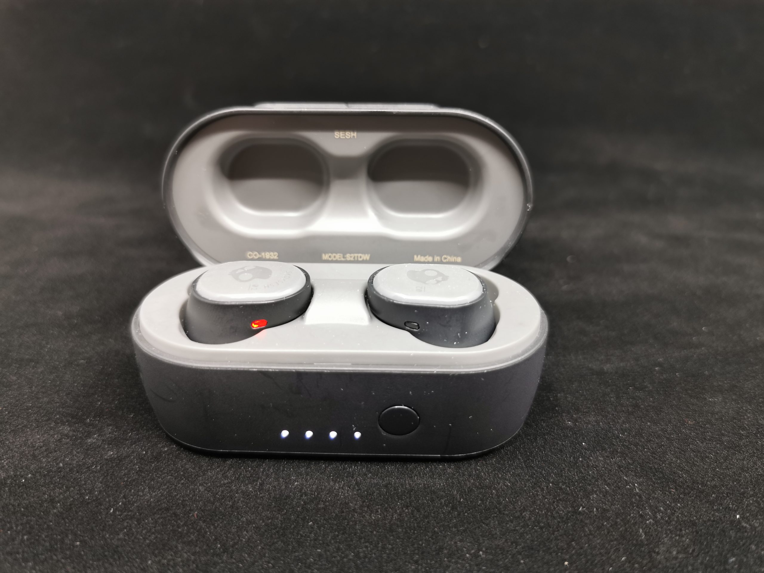 Lointaine est la période où les produits SkullCandy étaitn fluo, très chamarrés. A l’instar de marques gaming qui misaient sur les couleurs vives, SkullCandy privilégie maintenant le sobre et c’est très réussi. L’étui ainsi que les écouteurs sont d’un gris sombre efficace, et sobre.