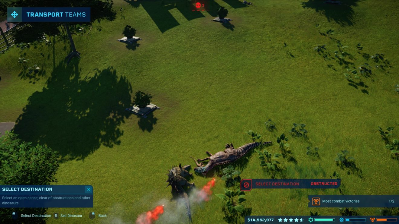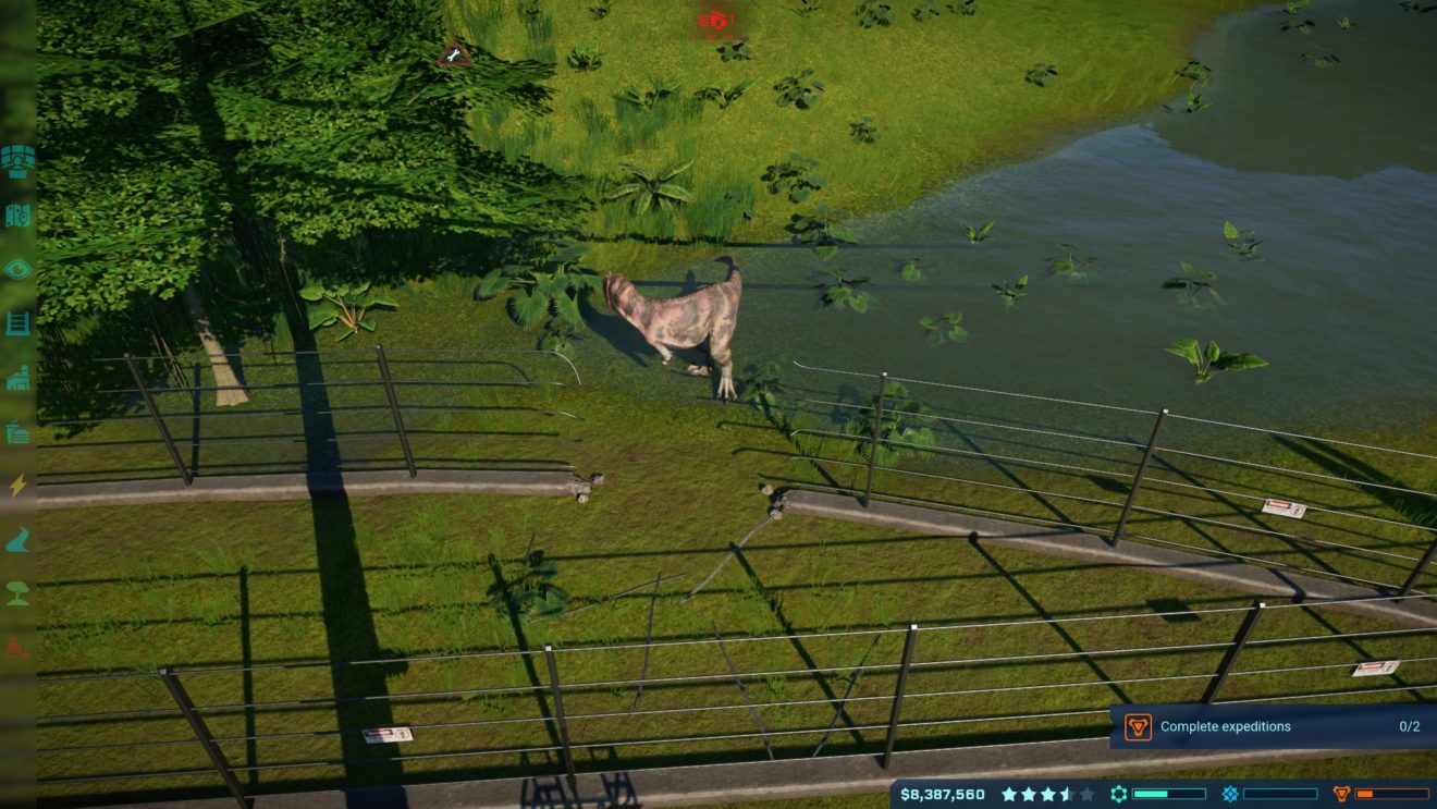 Au-delà du plaisir de créer des reptiles géants, et de les faire cohabiter ensemble (ou,à défaut, les voir s’entre-dévorer), c’est une gestion intelligente dont il faut faire preuve, tant au niveau des infrastructures que des enclos pour les dinos: certains aiment les zones densément boisées, d’autres les broussailles, d’autres ont besoin d’énormément d’espace (ce qui va impacter votre zone de construction en général)… Bref énormément de petites choses à penser, en-dehors de votre plan machiavélique pour rendre rentable un lieu où des créatures disparues de la planète ont été recréées.