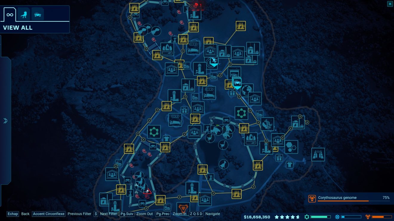Si dès le lancement de votre premier parc vous avez accès à différents dinosaures, ce ne sont pas ceux qui feront venir le plus de public dans votre parc, il faudra investir dans votre centre d’expédition, et votre centre de recherche pour obtenir des fossiles et en extraire l’ADN.