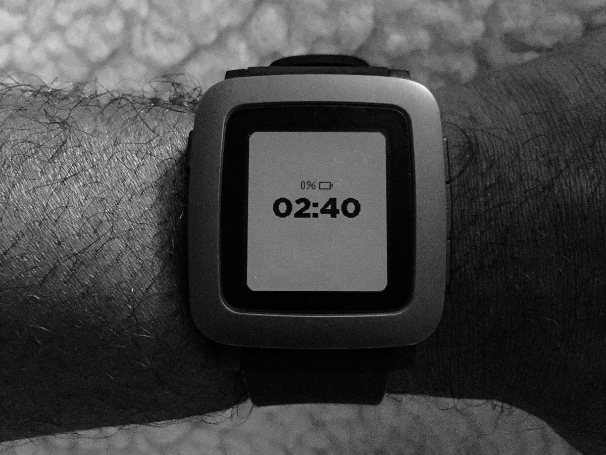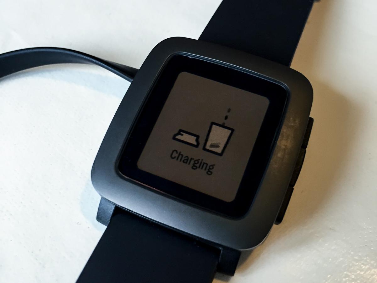 Commençons par ce qui fait une des grandes différences entre la Pebble Time et ses concurrentes : son autonomie. Alors oui, la Time n’est pas la plus dingue, la plus complète des montres connectées, mais quand on la met à son poignet le matin elle n’est pas complètement déchargée l’après-midi même à 17h… Loin, trèèèèès loin de là. Personnellement je n’ai jamais atteint les sept jours d’autonomie annoncés par Pebble, surtout que j’utilise une Watchface assez consommatrice d’énergie (une Watchface Matrix… comment pouvais-je résister ?). Sans compter les nombreuses notifications reçues en une journée. Je recharge la Time tous les deux à trois jours, ce qui pour moi est tout à fait acceptable, je ne peux pas dire qu’il m’arrive souvent d’être loin d’un port USB (la Pebble Time se recharge via un câble USB propriétaire) plus de trois jours de suite. Nous voilà donc avec un des atouts principaux des Pebble en général (la Time mais aussi la Pebble originelle) : pouvoir partir le matin sans se dire qu’il va falloir recharger sa montre l’après-midi car on a une sortie de prévue le soir même. Notez que lorsque la Time est complètement déchargée elle se transforme en montre classique : elle continue à vous donner l’heure ! Vous en avez la preuve ci-dessus sur la dernière photo.