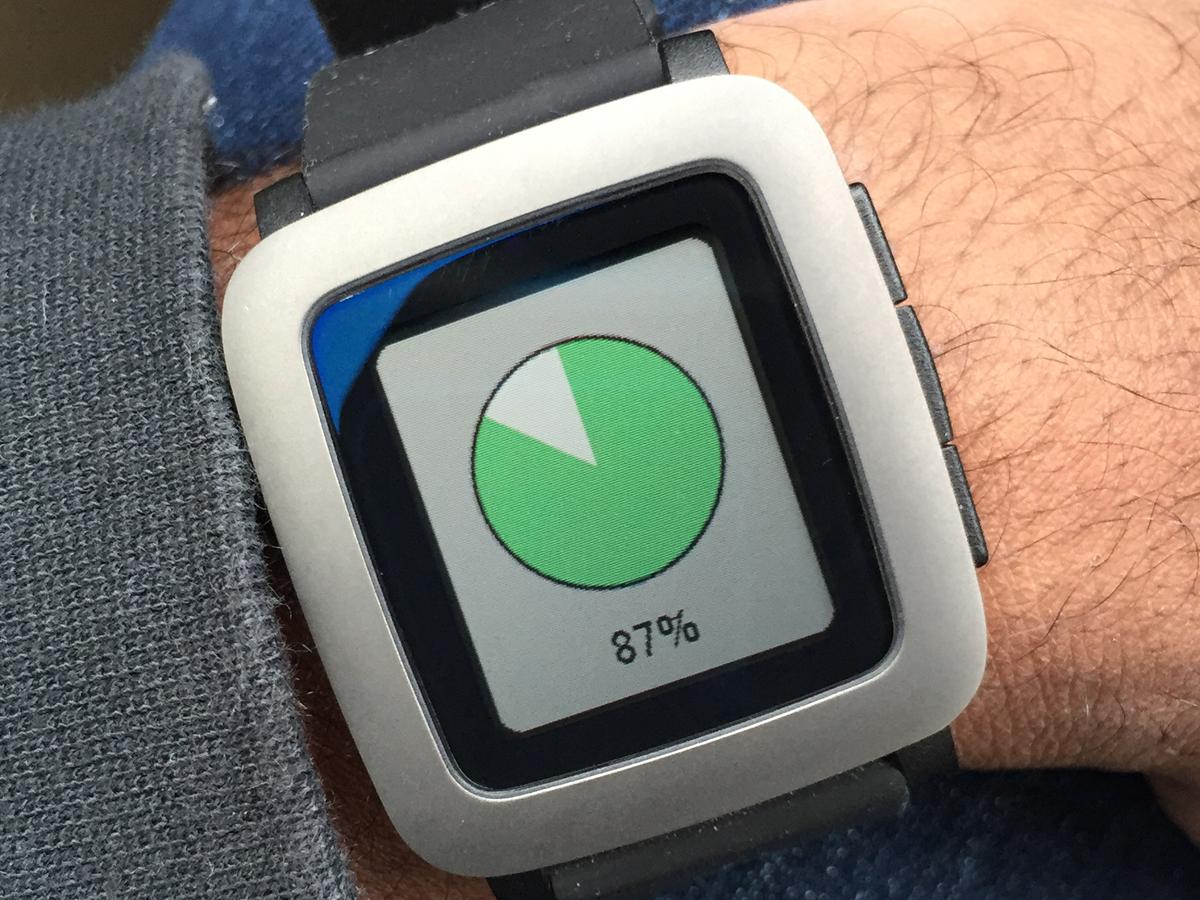 Une des fonctionnalités de base que j’utilise aussi énormément avec ma Pebble Time est la « télécommande » pour le lecteur audio de mon smartphone. Que ce soit Spotify ou Apple Music, je vois directement sur mon écran le nom de l’artiste et le titre de la chanson jouée. Je peux avancer ou reculer le morceau, passer au titre suivant ou précédent, et modifier le volume. Très pratique lorsque l’on est par exemple dans les transports en commun et qu’on n’a pas envie de sortir son téléphone de son sac ou sa poche, ou encore lorsque l’on est à la maison et que le smartphone est relié à une enceinte sans fil.