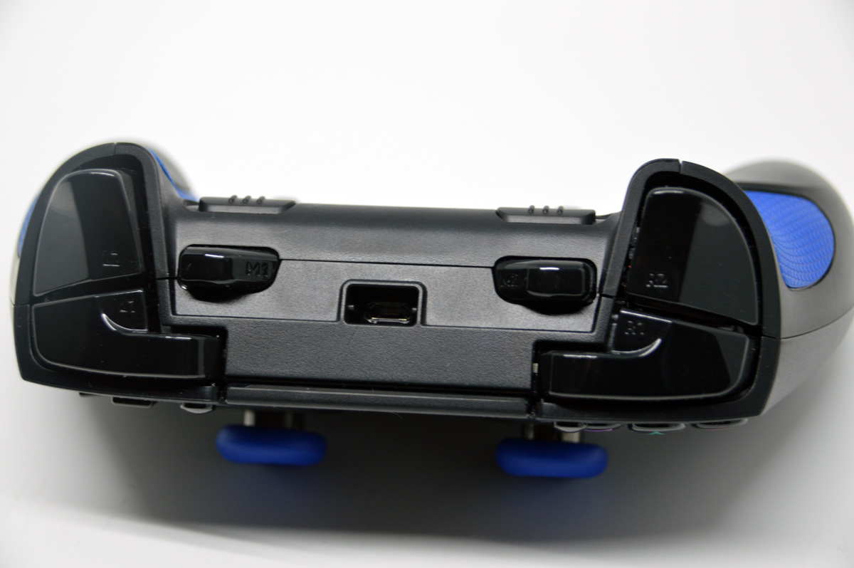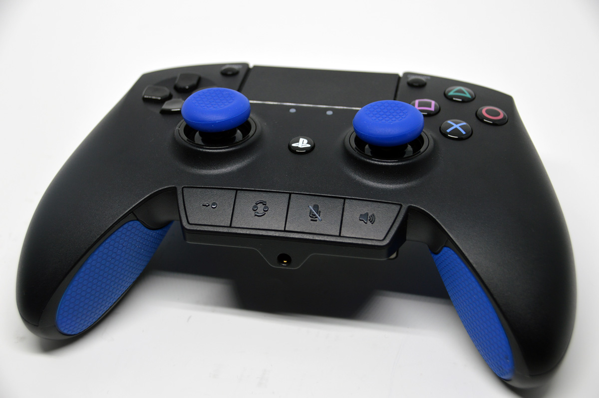 Les finitions sont à la hauteur de ce que nous propose généralement le constructeur Américain. Les plastiques sont de très bonne qualité, la prise en main est très agréable, les zones antidérapantes sur les côtés de la manette sont très discrètes, les joysticks symétriques si cher à Sony sont ici recouverts par des capuchons qui peuvent être changés. Les gâchettes de la manette sont très similaires à ce que l’on trouve actuellement sur la manette Xbox. On trouve d’ailleurs un petit interrupteur permettant de bloquer les gâchettes R2 et L2. Je n’y ai personnellement pas trouvé grand intérêt mais sachez tout de même que c’est faisable.