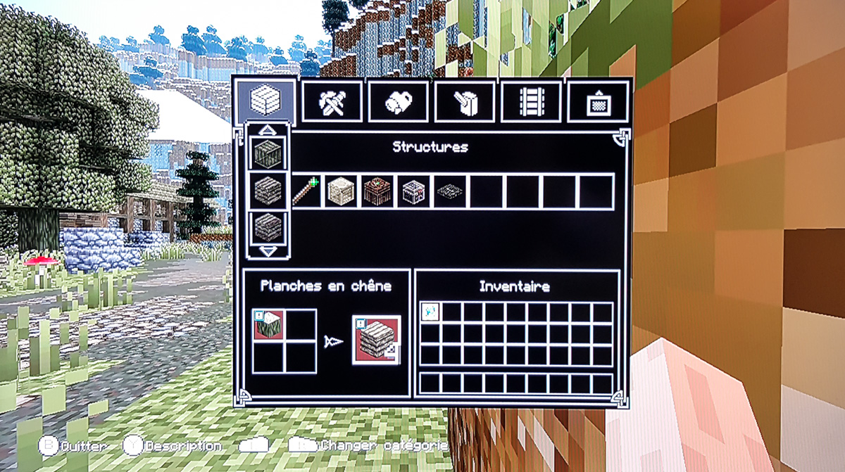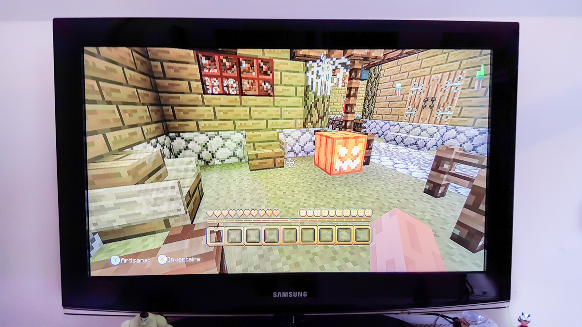 Le gamepad permet néanmoins de casser / créer / bouger les blocs très simplement, les mouvements sont fluides, adaptés et les anciens joueurs sur d’autres supports ne seront pas déstabilisés. Les néophytes quant à eux y trouveront leur compte grâce aux bulles d’aides qui nous accompagnent tout au long de nos premières créations ainsi que le didacticiel initial.