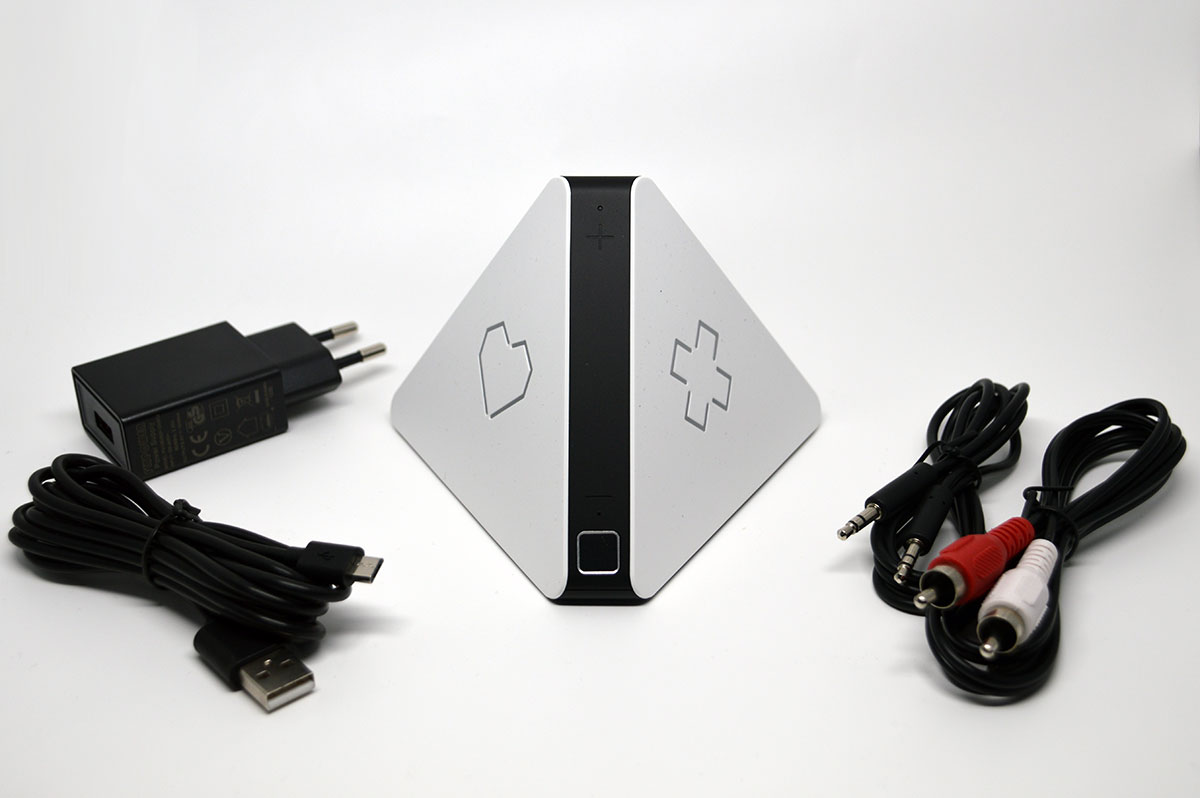 Quand on ouvre la boîte, le Prizm est beau, il donne envie. Il va se retrouver dans notre salon, donc son design est important. Il est livré avec tout ce qu’il faut pour le brancher à des enceintes (sauf un câble optique). En plus, le Prizm est Bluetooth pour convenir à tous les usages.