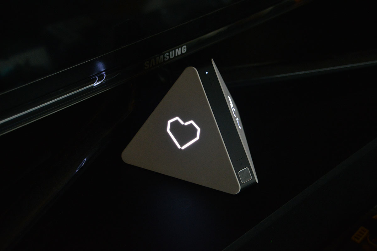 Petite parenthèse : je suis allé les rencontrer dans leurs locaux à Paris et en découvrir un petit peu plus sur ce objet connecté. Ainsi, le premier modèle ne ressemblait absolument pas à un triangle mais plutôt à une télécommande des années 50 avec un gros bouton à tourner et des tout petits.