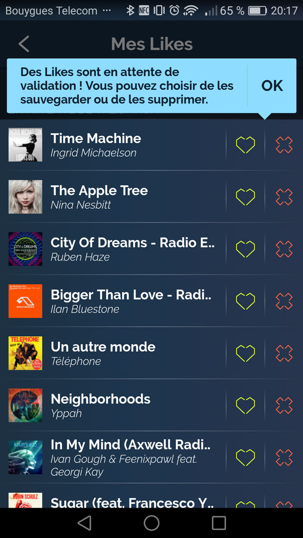 Nos coups de cœur se retrouvent dans l’application et se mettent dans une playlist dédiée afin de retrouver ce qui nous a plu. C’est vraiment top.