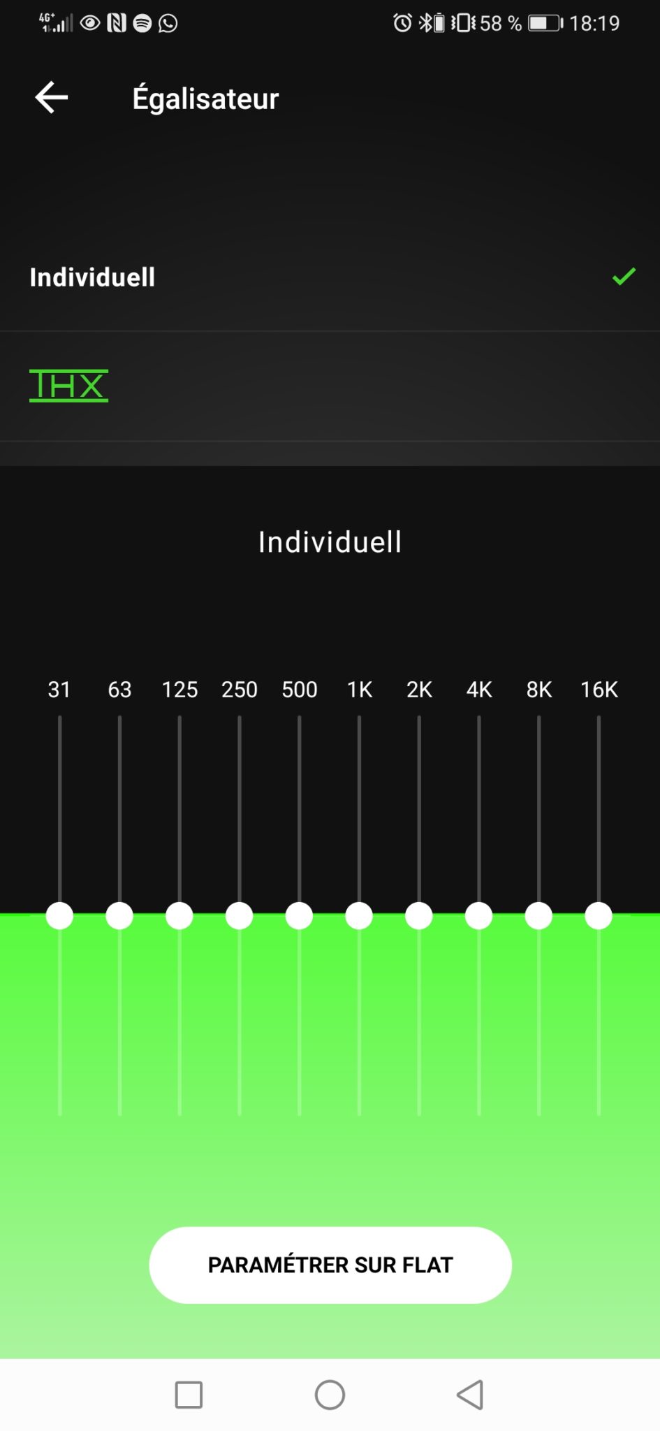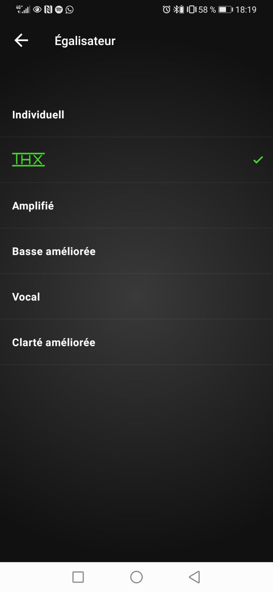 • gérer les différents profils audio disponibles (vous pourrez en personnaliser un vous-même, ou utiliser un de ceux déjà présents. Le preset de base est basé sur le profil THX, et fera un excellent boulot).