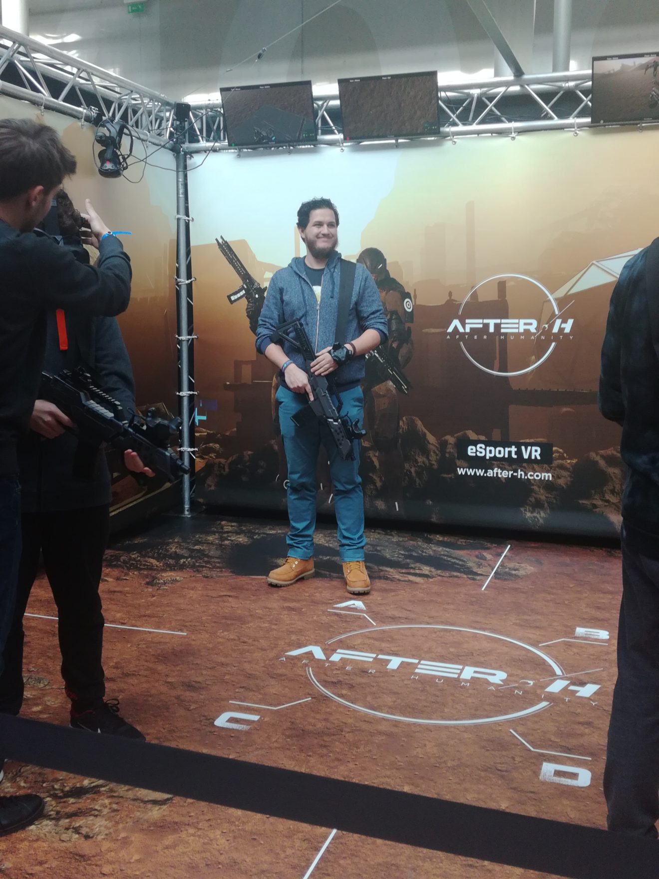 Je me permets une dernière incursion gaming dans ce dossier avec le jeu After H (Smart VR Studio) qui a été le symbole à mes yeux de ce salon. Sur un espace d’environ 5m sur 5m, 4 joueurs équipés d’un casque VR et d’un fusil s’affrontent sur une arène en 2 Vs 2. Le gros fan de FPS que je suis n’a donc pas pu résister à l’envie de tenter sa chance pour se qualifier pour la compétition du jour, car oui, on parle bien ici d’e-sport!